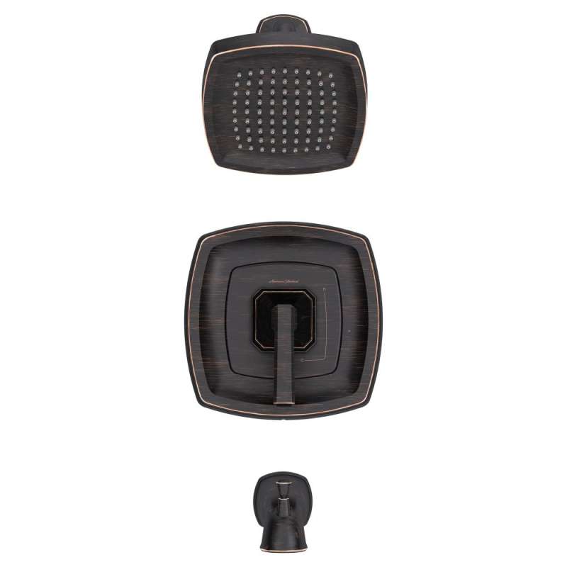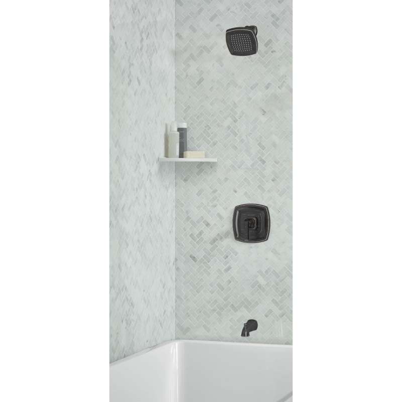 - Includes single-function showerhead and arm, pressure balance valve cartridge, metal diverter tub spout