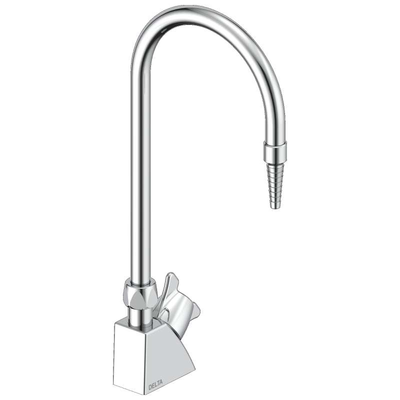 The Delta W6600 is a durable deck-mounted laboratory faucet with a 6" rigid/swivel gooseneck spout, serrated nozzle, and two-arm TECK handle for precise control. Fits up to 1-1/4" hole (7/8" recommended) and features a chrome finish. Trim sold separately. Deck-Mount Gooseneck Spout with a serrated nozzle, two-arm laboratory handle, and color index. Fits up to 1-1/4" hole (7/8" recommended). Measures 6" long, 15" high for versatile use.