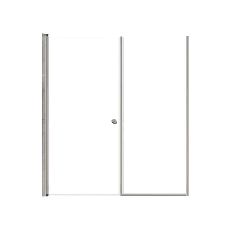 - 60.75-in to 61.75-in W x 70-in H pivot shower door for an alcove shower