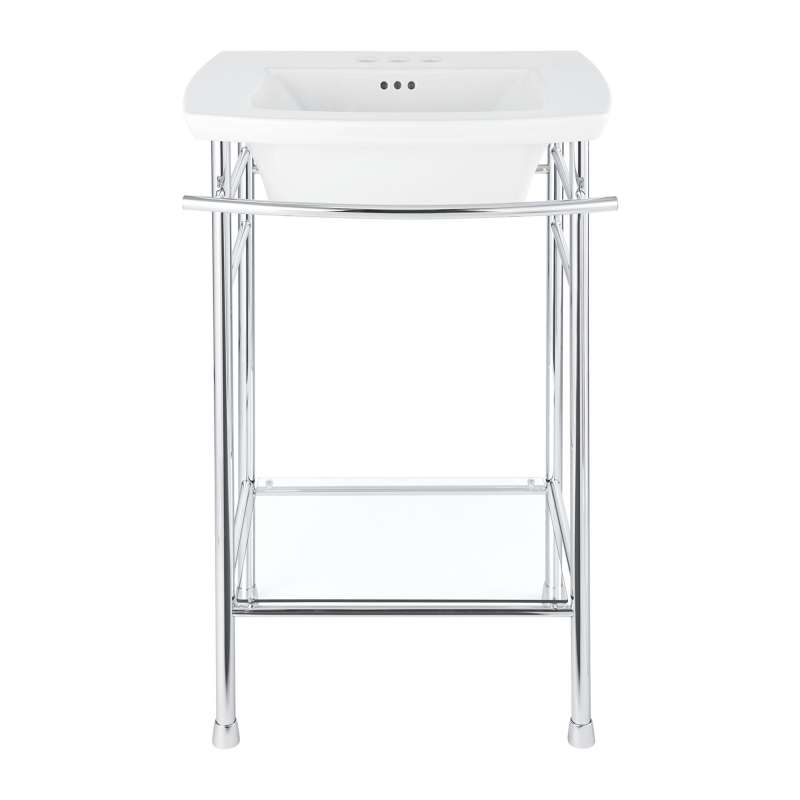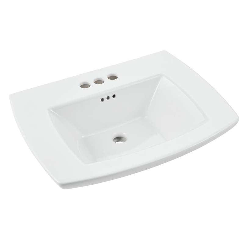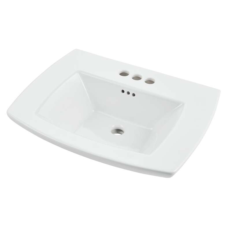 The Edgemere bathroom sink top from American Standard has 4-inch centers to pair with one of our beautiful bathroom faucets. This elegant sink top can be paired with the Edgemere pedestal sink leg or the console sink legs, providing you with a customized bathroom that fits your needs. This expertly crafted sink top installs easily on the Edgemere sink legs, and was designed to match a variety of bathroom styles.