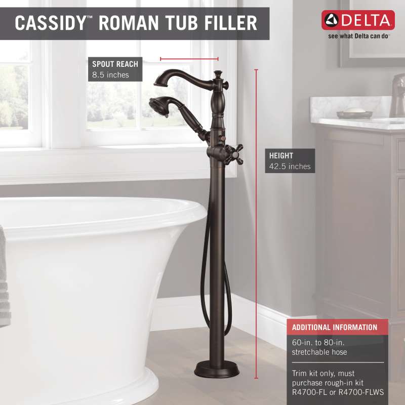 Complete your bath with a beautifully designed Delta roman tub faucet, meticulously crafted to turn heads and enhance your experience. The included hand shower makes this a versatile addition to your bath, perfect for rinsing off, washing loved ones and pets or keeping your tub clean. Delta H2Okinetic Hand Showers look different because they are different. Using advanced technology, H2Okinetic Hand Showers sculpt water into a unique wave pattern, giving you 3X the coverage of a standard shower head. The end result is a hand shower that provides more coverage, more warmth and more intensity for a truly drenching experience. An ornate blend of deep, warm tones and subtle highlights give Venetian Bronze a hand-brushed look that can transform a bath. Offering a smooth contrast to light tones and coordinating well with darker ones, this finish can have a beautiful soothing effect on almost any space. You can install with confidence, knowing that Delta faucets are backed by our Lifetime Limited Warranty. Coverage measured in accordance with EPA WaterSense Specification for shower heads, March 4, 2010.