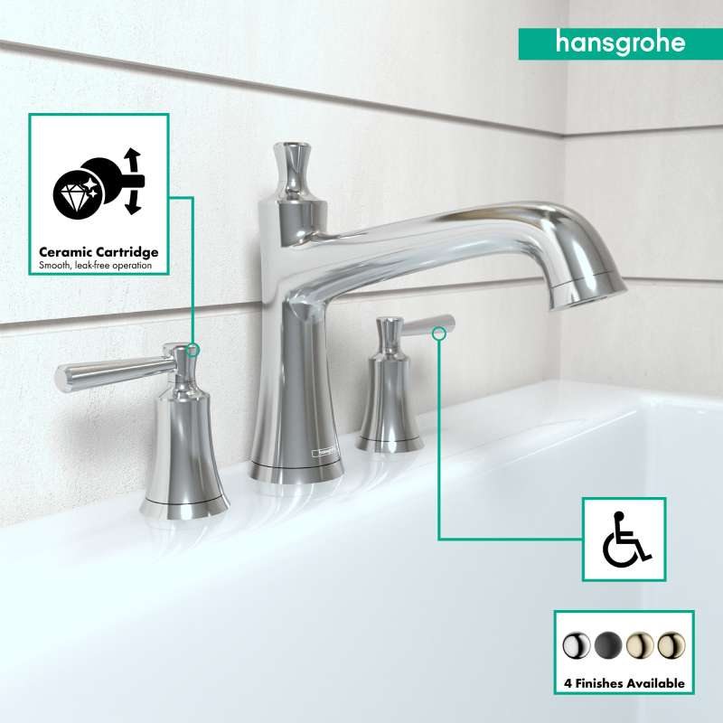 Whether you're starting your day with a shower or winding down with a hot soak, Joleena will elevate the experience and seamlessly weave it in with the rest of your day. The Joleena 3-Hole Tub Filler perfectly coordinates with the entire Joleena bath and shower collection. It requires the hansgrohe Rough for 3-Hole Roman Tub Sets (06607000) for installation in your bathroom. Transform your bathroom into a cleaner and more polished part of your home with the Joleena Collection by hansgrohe.