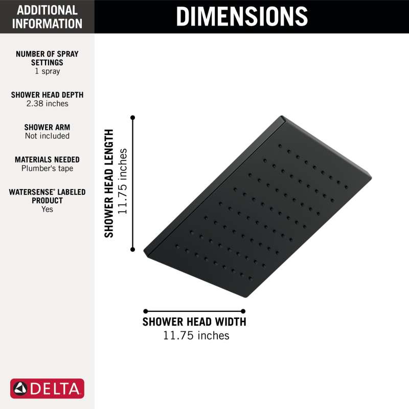 • 52159-BL Universal Showering Components Single-Setting Metal Raincan Shower Head, Matte Black Matte Black