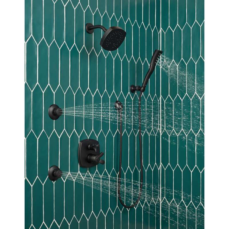 Make your shower your own with Delta HydraChoice Body Sprays. With 50° of adjustability in any direction, the pop-out body sprays can be angled to suit everyone, from the tallest in the household to the shortest and the seated. While other products may gather unsightly mineral build-up over time, Delta soft rubber Touch-Clean spray holes allow any mineral residue to simply be wiped away for an instantly refreshed look – with no need for soaking or the aid of chemical cleaners. Matte Black makes a statement in your space, cultivating a sophisticated air and coordinating flawlessly with most other fixtures and accents. With bright tones, Matte Black is undeniably modern with a strong contrast, but it can complement traditional or transitional spaces just as well when paired against warm neutrals for a rustic feel akin to cast iron.