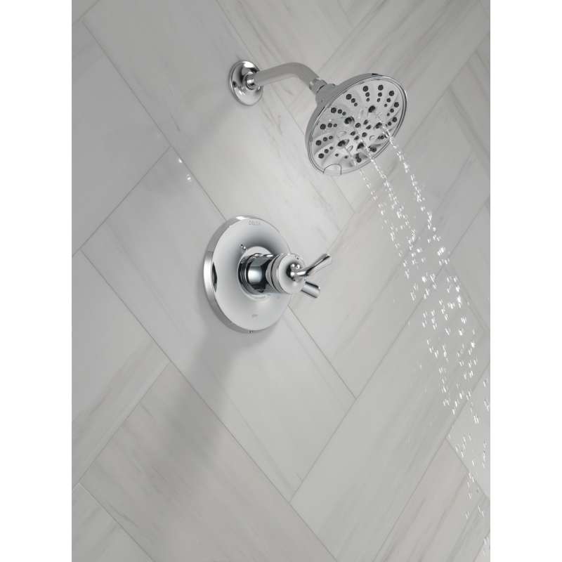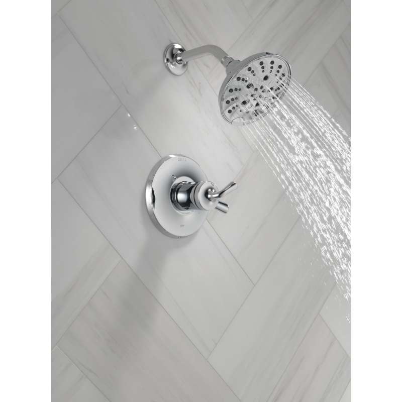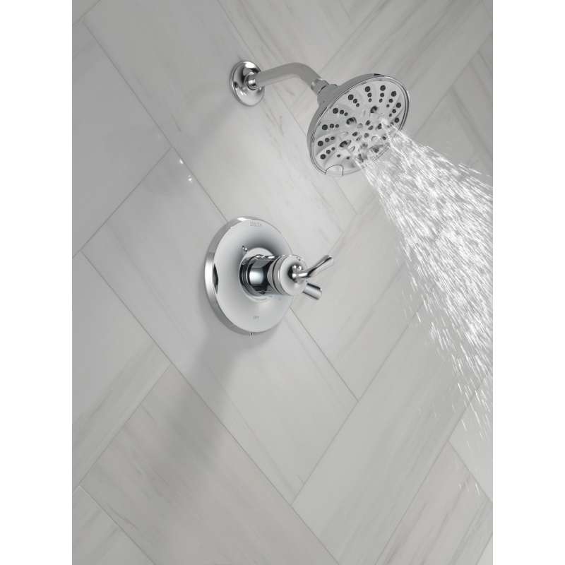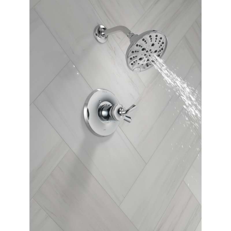 The stretched feminine form and unbroken lines of the kayra bath collection create a clean, flowing design. With separate handles for volume and temperature control, this delta shower only faucet provides a more refined showering experience. Simply set the water at your preferred temperature and turn the shower on or off with the volume control handle - without interrupting your set temperature. The pause setting gives you ample space for shaving, lathering and other shower tasks, then easily restarts the water with the temperature where you left off. This spray setting helps you conserve water, so you can worry less about depleting your supply of hot water - and you help the environment too. Delta pressure-balance valves use monitor technology to protect you and your family from sudden temperature changes. Delta watersense labeled faucets, showers and toilets use at least 20% less water than the industry standard—saving you money without compromising performance. You can install with confidence, knowing that delta faucets are backed by our lifetime limited warranty.