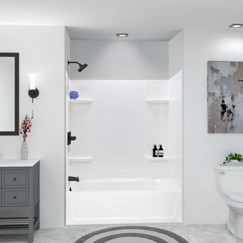 Effortless upgrade your bathroom with Mustee all-in-one bath/shower kits! These kits feature a timeless and classic design, meticulously crafted from premium materials to ensure years of lasting quality. They are designed for easy cleaning and maintenance, plus they're resistant to mold and mildew, making them a practical choice for any home. Transform your bathroom effortlessly with Mustee! Kit includes 60-in x 30-in bathtub and wall set.TOPAZ left-hand bathtub is molded using premium Varistone fiberglass and features an easy-to-clean semi-gloss finish and a 40-degree lumbar slope for relaxed reclining while soaking. DURAWALL high-impact thermoplastic 5-panel wall system adjusts to out-of-plumb walls and features seamless, overlapping corner panels to assure leak resistant performance. Wallset adhesive mounts to drywall and like surfaces; panels can be trimmed to simplify installation in out-of-plumb alcoves or for installing DURATRIM window kits. Smooth, colorfast glossy finish is easy to clean, resists scuffs, and is mold and mildew-resistant. Includes four large, molded-in, self-draining shelves ideal for shampoo, soap, and any other bathroom necessities.
