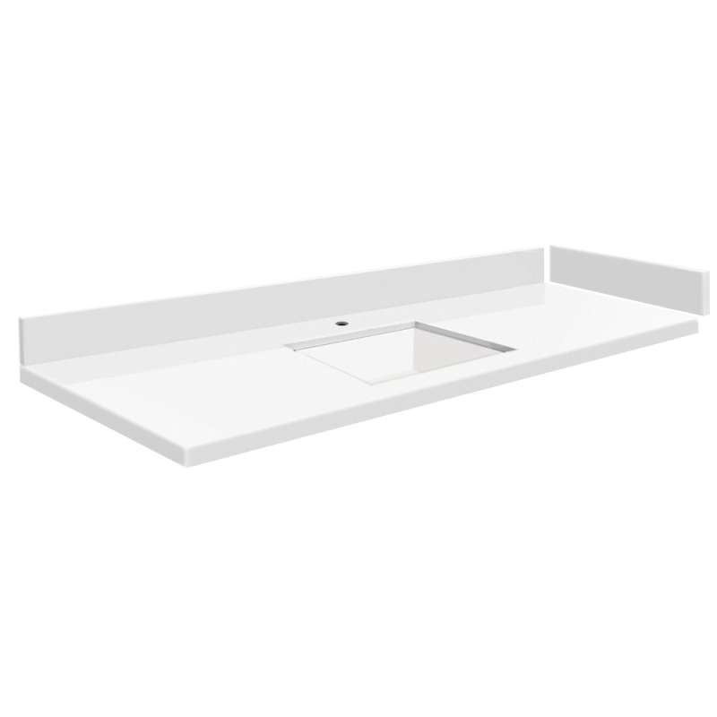 • SMVT61-72.75x22-1KU-C01 Mini Custom Quartz 61-72.75-in x 22-in Vanity Top with Vail Bowl, Mia White Mia White