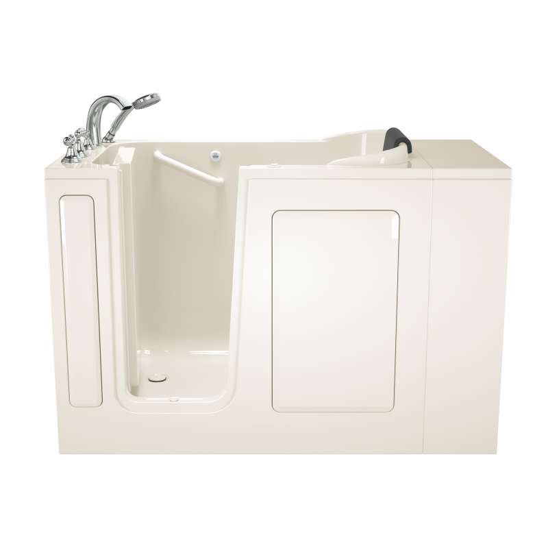 The American Standard 28-in x 48-in Gelcoat walk-in bath provides a similar bathing experience to larger models but fits in smaller spaces and uses less water. The included tub extender allows this tub to retrofit in the same space as a standard bathtub. The full sized, contoured door with a low door threshold allows ease of entry and exit. Fully equipped, the 109 Premium Series offers all the latest in safety and comfort features with the most advanced therapeutic options and backed by a lifetime warranty on the door seal, a 10 year warranty on the tub shell and a 5 year warranty on all other components.