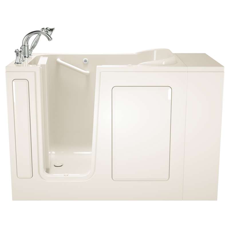 The American Standard 28-in x 48-in Gelcoat walk-in bath provides a similar bathing experience to larger models but fits in smaller spaces and uses less water. The included tub extender allows this tub to retrofit in the same space as a standard bathtub. The full sized, contoured door with a low door threshold allows ease of entry and exit. Fully equipped, the 509 Value Series offers all the latest in safety and comfort features bundled together at one low cost and backed by a lifetime warranty on the door seal, a 10 year warranty on the tub shell and a 5 year warranty on all other components.