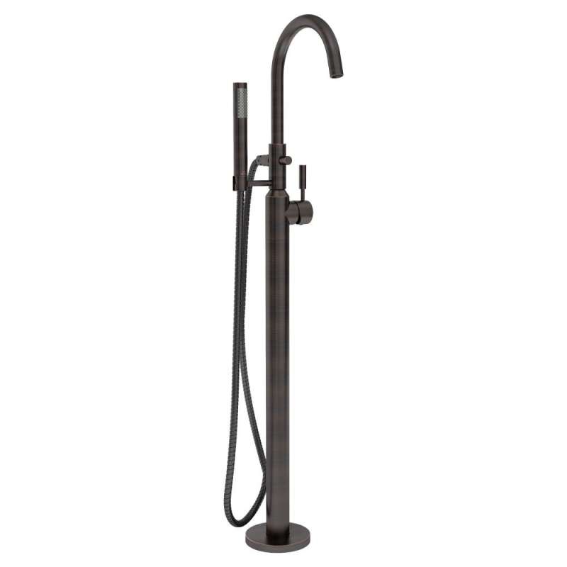 The clean, minimalist lines of the Cadet Freestanding Bathtub Faucet makes it the perfect choice for every bathroom style. This sleek, freestanding tub filler features a slim, hand shower, ideal for rinsing off after bathing or cleaning the tub with ease. Made of brass with metal lever handle and hand shower for lasting beauty and performance.
