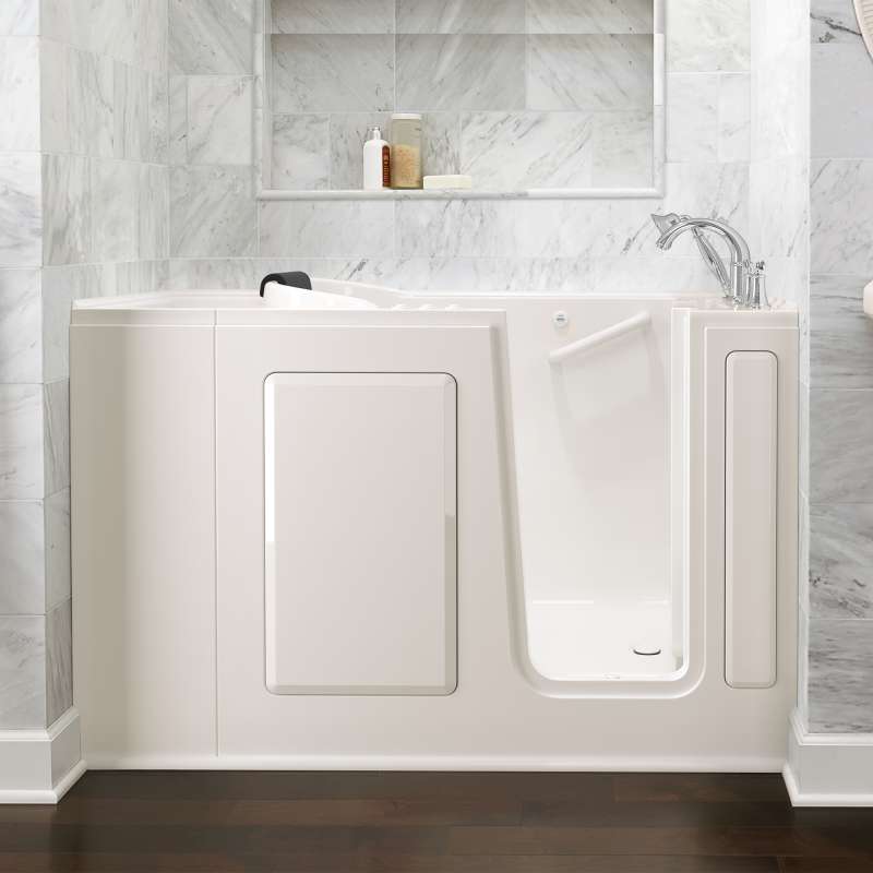 The American Standard 28-in x 48-in Gelcoat walk-in bath provides a similar bathing experience to larger models but fits in smaller spaces and uses less water. The included tub extender allows this tub to retrofit in the same space as a standard bathtub. The full sized, contoured door with a low door threshold allows ease of entry and exit. Fully equipped, the 609 Value Series offers all the latest in safety and comfort features with the most advanced therapeutic options and backed by a lifetime warranty on the door seal, a 10 year warranty on the tub shell and a 5 year warranty on all other components.