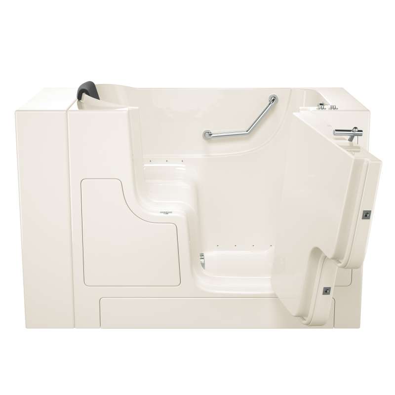 The American Standard 30-in x 52-in Gelcoat walk-in bath provides a similar bathing experience to larger models but fits in smaller spaces and uses less water. The included tub extender allows this tub to retrofit in the same space as a standard bathtub. The full sized, outward opening, contoured door with a low door threshold allows ease of entry and exit. Fully equipped, the 105 Premium Series offers all the latest in safety and comfort features with the most advanced therapeutic options and backed by a lifetime warranty on the door seal, a 10 year warranty on the tub shell and a 5 year warranty on all other components.