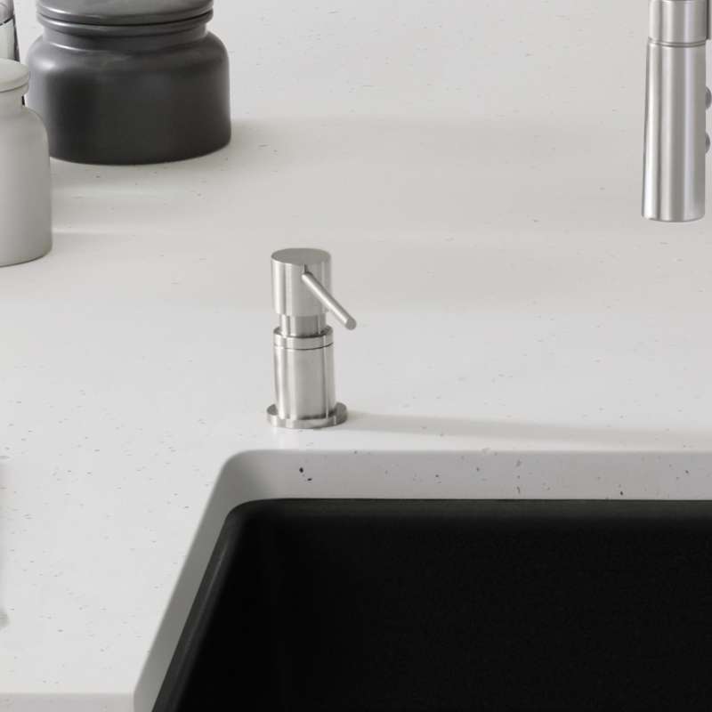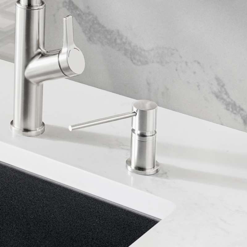For a perfectly seamless design, complete the look of your sink area by adding a matching LATO SOAP DISPENSER. Designed to coordinate with all BLANCO SILGRANIT sinks and the URBENA Faucet collection, this stunning soap dispenser is engineered to never clog or drip. Plus, they're specially treated to protect against discoloration and corrosion. Keep your kitchen workspace free of clutter and your dish soap within arm's reach with the LATO SOAP DISPENSER.