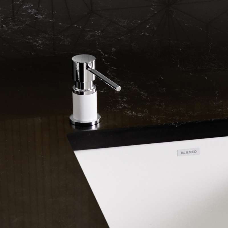 For a perfectly seamless design, complete the look of your sink area by adding a matching LATO SOAP DISPENSER. Designed to coordinate with all BLANCO SILGRANIT sinks and the URBENA Faucet collection, this stunning soap dispenser is engineered to never clog or drip. Plus, they're specially treated to protect against discoloration and corrosion. Keep your kitchen workspace free of clutter and your dish soap within arm's reach with the LATO SOAP DISPENSER.