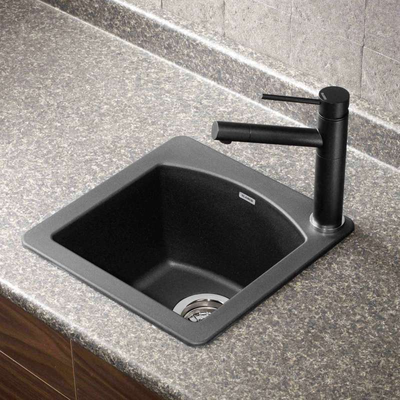 The DIAMOND BAR SINK features a compact single bowl design, making it the perfect solution for small kitchens or additional prep zones. The DIAMOND MINI BAR SINK can be installed as a drop-in or undermount sink. Made of SILGRANIT(R), DIAMOND kitchen sinks are engineered to withstand heavy cookware and hot bakeware. Silgranit sinks are not only strong but also beautiful, available in a range of nature-inspired colors that effortlessly complement the latest kitchen trends. Combine the DIAMOND sink with a BLANCO faucet and accessories to create a BLANCO UNIT; a seamlessly integrated kitchen solution designed to transform kitchen chores into joyful experiences. Everything you need to drink, prep and clean, all in one place.