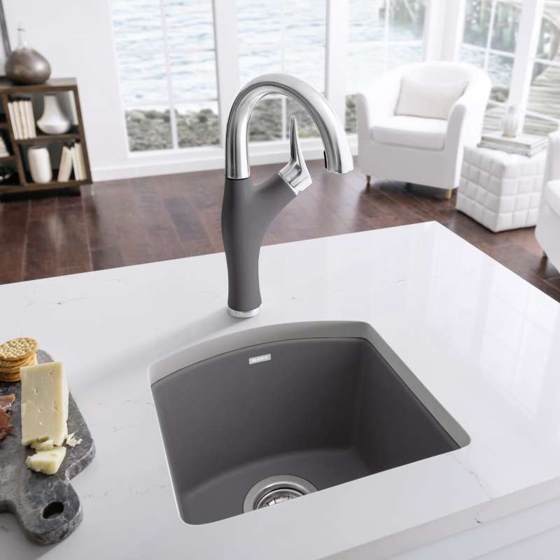 The DIAMOND BAR SINK features a compact single bowl design, making it the perfect solution for small kitchens or additional prep zones. The DIAMOND MINI BAR SINK can be installed as a drop-in or undermount sink. Made of SILGRANIT(R), DIAMOND kitchen sinks are engineered to withstand heavy cookware and hot bakeware. Silgranit sinks are not only strong but also beautiful, available in a range of nature-inspired colors that effortlessly complement the latest kitchen trends. Combine the DIAMOND sink with a BLANCO faucet and accessories to create a BLANCO UNIT; a seamlessly integrated kitchen solution designed to transform kitchen chores into joyful experiences. Everything you need to drink, prep and clean, all in one place.