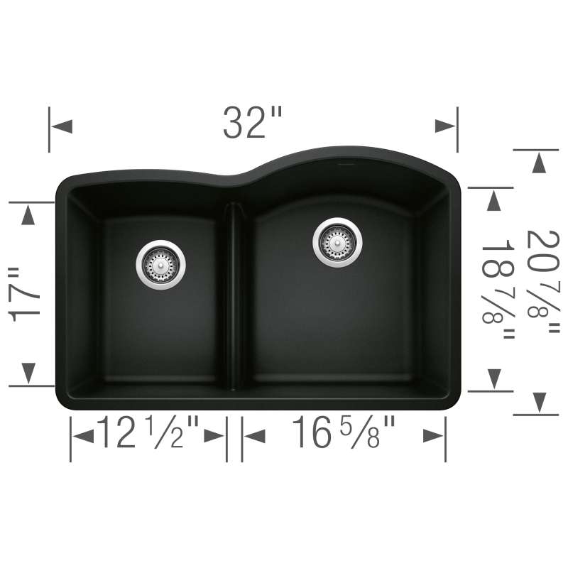 The DIAMOND 40/60 REVERSE DOUBLE BOWL UNDERMOUNT KITCHEN SINK with LOW DIVIDE features a 40/60 bowl design, offering plenty of room for rinsing, washing, soaking, spraying and straining operations. The 40/60 bowl split allows for washing larger items while still leaving the smaller bowl open. Made of SILGRANIT(R), DIAMOND kitchen sinks are engineered to withstand heavy cookware and hot bakeware. Silgranit sinks are not only strong but also beautiful, available in a range of nature-inspired colors that effortlessly complement the latest kitchen trends. Combine the DIAMOND sink with a BLANCO faucet and accessories to create a BLANCO UNIT; a seamlessly integrated kitchen solution designed to transform kitchen chores into joyful experiences. Everything you need to drink, prep and clean, all in one place.