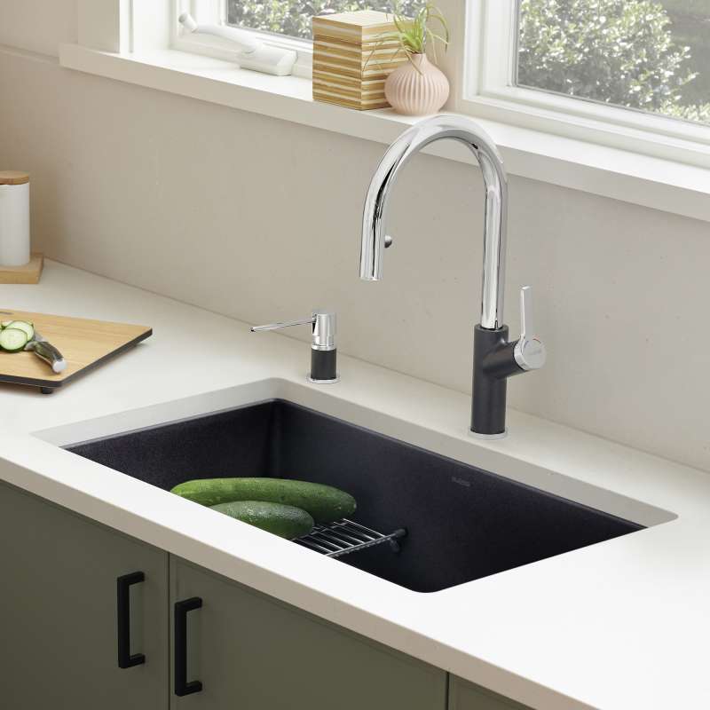 The PRECIS 30" UNDERMOUNT SINGLE BOWL KITCHEN SINK offers clean lines and a simple but spacious single bowl design. Made of SILGRANIT(R), PRECIS kitchen sinks are engineered to withstand heavy cookware and hot bakeware. Silgranit sinks are not only strong but also beautiful, available in a range of nature-inspired colors that effortlessly complement the latest kitchen trends. Combine the PRECIS sink with a BLANCO faucet and accessories to create a BLANCO UNIT; a seamlessly integrated kitchen solution designed to transform kitchen chores into joyful experiences. Everything you need to drink, prep and clean, all in one place.