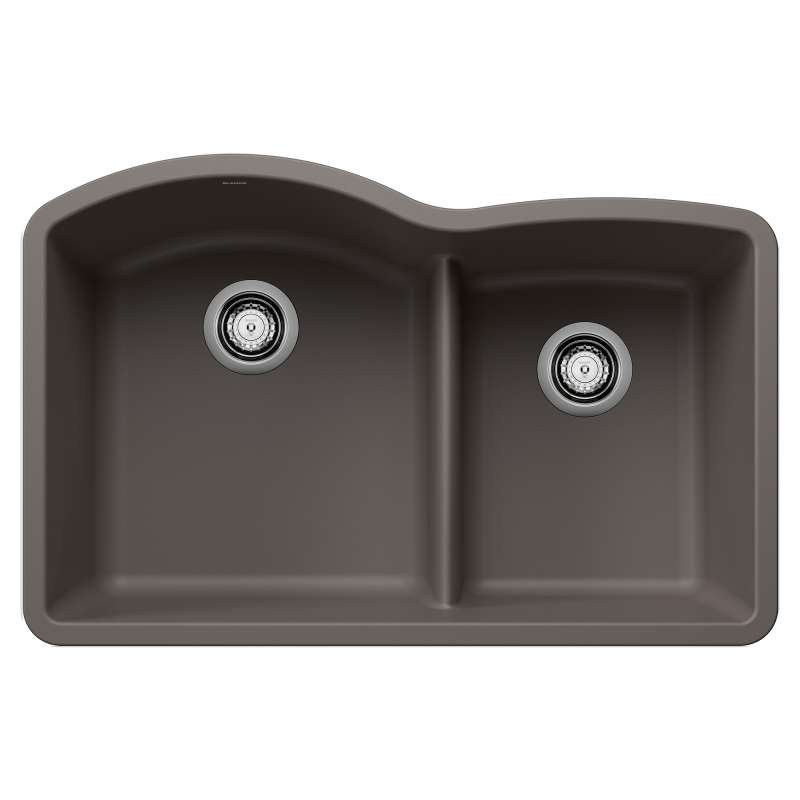 The DIAMOND 60/40 DOUBLE BOWL UNDERMOUNT KITCHEN SINK with LOW DIVIDE features a 60/40 bowl design with low partition, offering plenty of room for rinsing, washing, soaking, spraying and straining operations. The 60/40 bowl split allows for washing larger items while still leaving the smaller bowl open and the convenient low divide sits just 5-1/2" from the sink bottom, making it easier to handle large pots and baking sheets. Made of SILGRANIT(R), DIAMOND kitchen sinks are engineered to withstand heavy cookware and hot bakeware. Silgranit sinks are not only strong but also beautiful, available in a range of nature-inspired colors that effortlessly complement the latest kitchen trends. Combine the DIAMOND sink with a BLANCO faucet and accessories to create a BLANCO UNIT; a seamlessly integrated kitchen solution designed to transform kitchen chores into joyful experiences. Everything you need to drink, prep and clean, all in one place.