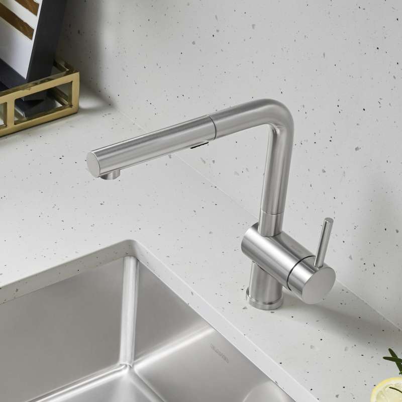A beautifully-designed kitchen deserves an equally beautiful faucet. The LINUS Low-Arc Pull-Out Kitchen Faucet features a sleek, low-profile design, perfect for contemporary kitchen designs or kitchen workspaces with upper cabinets that have limited overhead clearance. Exclusive to BLANCO, the LINUS features color-coordinated finishes to match beautifully with the full spectrum of SILGRANIT sink colors. Matching your kitchen sink with a color-coordinated faucet allows you to breathe new life into your kitchen without having a costly remodel. The bold, angular design of the LINUS will make your kitchen workspace stand out from the rest.
