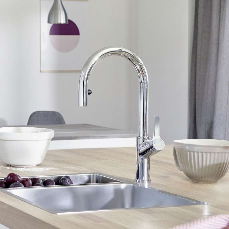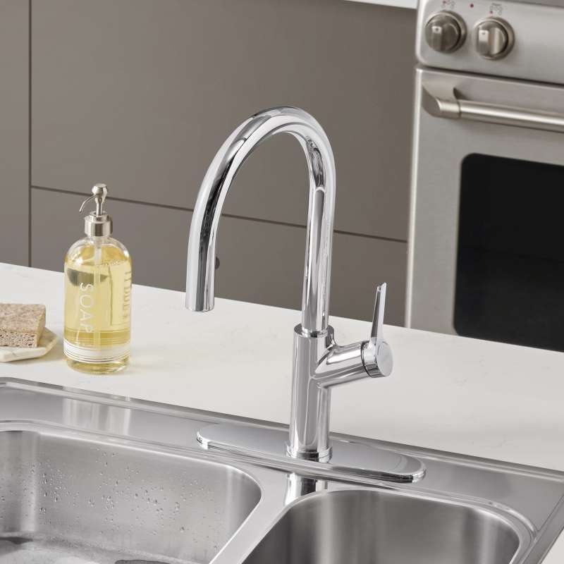 - Powerful pull-down, integrated dual spray function
