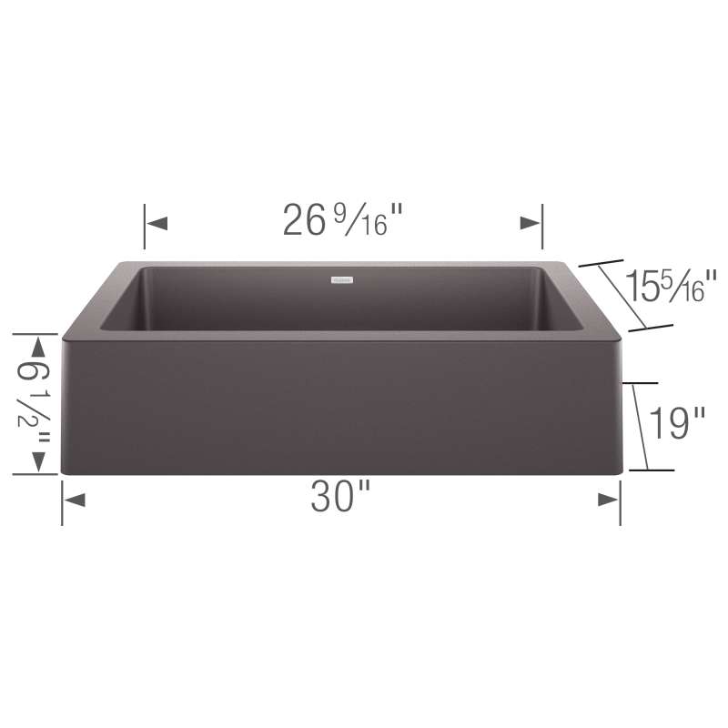 The VINTERA 30 kitchen sink provides a slim 6 1/2-inch apron and a generous 9-inch bowl depth. The VINTERA is a contemporary version of the farmhouse sink style with versatile installation capabilities, allowing for a unique flushmount placement. The VINTERA 30 fits into a standard base cabinet measuring 30 inches - the same width as the sink. This eliminates the need for custom cabinetry common with farmhouse sinks, making kitchen renovations easier. Made of BLANCO's patented SILGRANIT(R) composite material, VINTERA sinks are engineered to withstand heavy cookware and hot bakeware. Strong and beautiful, Silgranit sinks are available in a range of nature-inspired colors that effortlessly complement the latest kitchen trends. Combine the VINTERA 30" sink with a BLANCO faucet and accessories to create a BLANCO UNIT; a seamless, fully-integrated kitchen solution designed to transform kitchen chores into joyful experiences.
