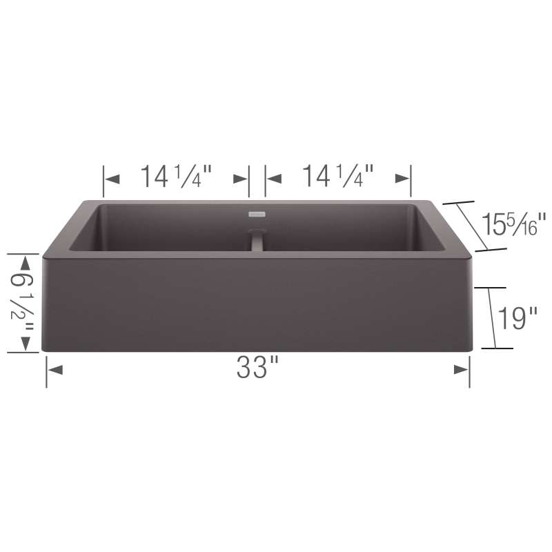 The VINTERA 33 EQUAL DOUBLE APRON kitchen sink provides a slim 6 1/2-inch apron, generous 9-inch bowl depth and two bowls ideal for multitasking. The VINTERA is a contemporary version of the farmhouse sink style with versatile installation capabilities, allowing for a unique flushmount placement. The VINTERA 33 fits into a standard base cabinet measuring 33 inches - the same width as the sink. This eliminates the need for custom cabinetry common with farmhouse sinks, making kitchen renovations easier. Made of BLANCO's patented SILGRANIT(R) composite material, VINTERA sinks are engineered to withstand heavy cookware and hot bakeware. Strong and beautiful, Silgranit sinks are available in a range of nature-inspired colors that effortlessly complement the latest kitchen trends. Combine the VINTERA 33" sink with a BLANCO faucet and accessories to create a BLANCO UNIT; a seamless, fully-integrated kitchen solution designed to transform kitchen chores into joyful experiences.