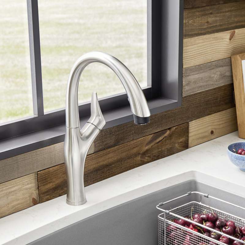 - Powerful pull-down, integrated dual spray function