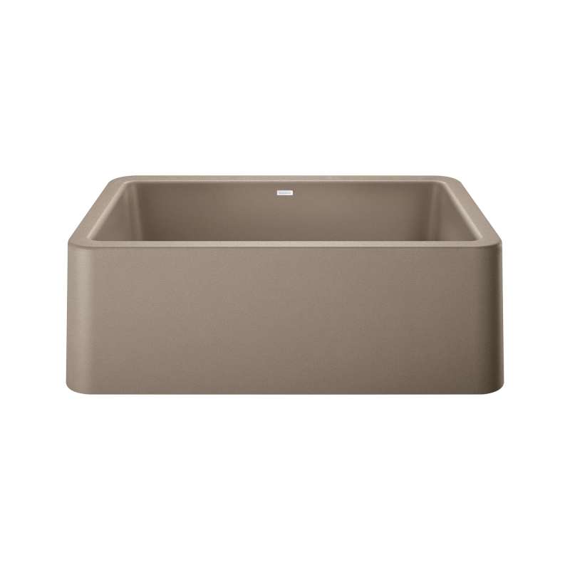Introducing the BLANCO IKON Farmhouse Collection. The IKON is the world's first apron-front sink made of natural granite composite, SILGRANIT, our patented, certified granite composite material that is engineered to take on the toughest kitchen tasks. SILGRANIT is heat, scratch, stain, chip and impact resistant, making it stronger and more durable than other sink materials. Beautiful and highly functional with its non-porous, hygienic surface, it pushes away liquids and residue resulting in a low maintenance, easy to clean, long-lasting material. With its slightly angled apron design, the IKON will add a bold, architectural element to your kitchen.