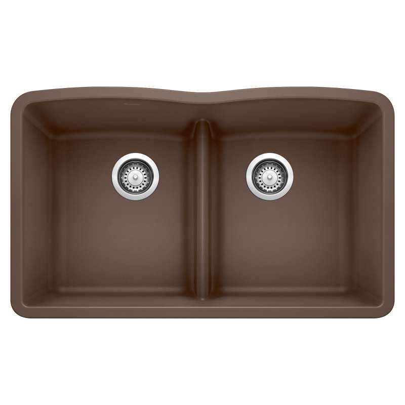 Single bowl space, double bowl convenience. The BLANCO DIAMOND DOUBLE BOWL UNDERMOUNT KITCHEN SINK with LOW DIVIDE features a 5/5 bowl design with low partition, offering plenty of room for rinsing, washing, soaking, spraying and straining operations. The ideal choice for those who wash dishes by hand, you can stack dirty dishes and utensils in one sink while prepping in the other. This kitchen sink is made of SILGRANIT, a patented, certified granite composite material that is engineered to take on the toughest kitchen tasks. SILGRANIT is heat, scratch, stain, chip and impact resistant, making it stronger and more durable than other sink materials. Beautiful and highly functional with its non-porous, hygienic surface, it pushes away liquids and residue resulting in a low maintenance, easy to clean, long-lasting material.