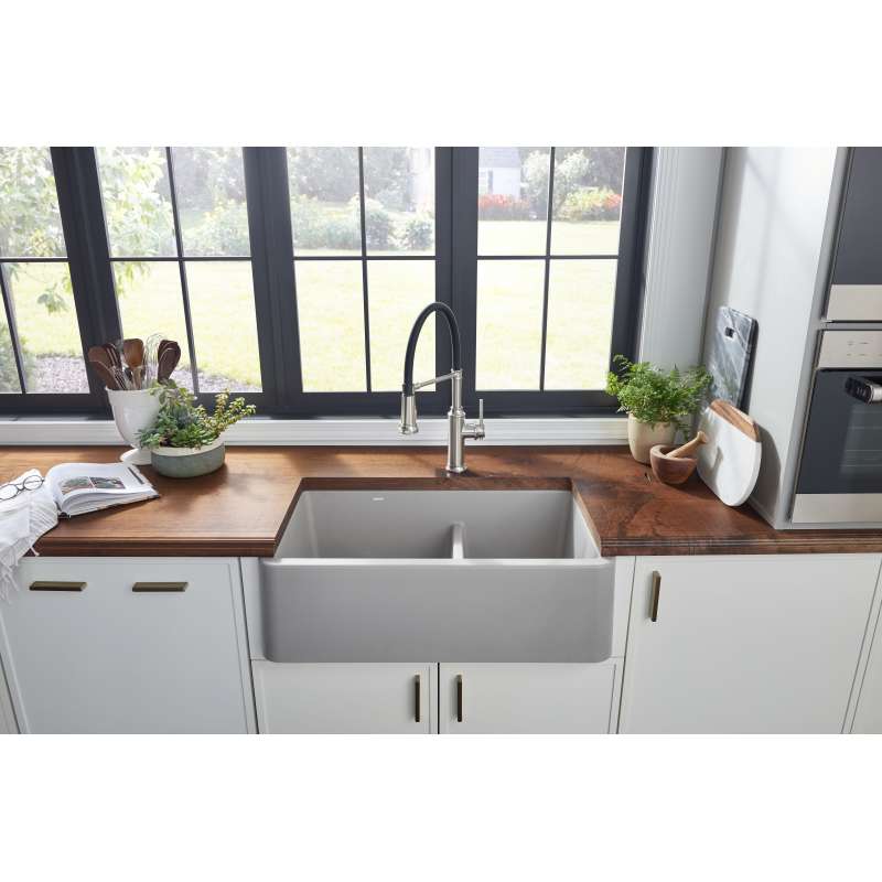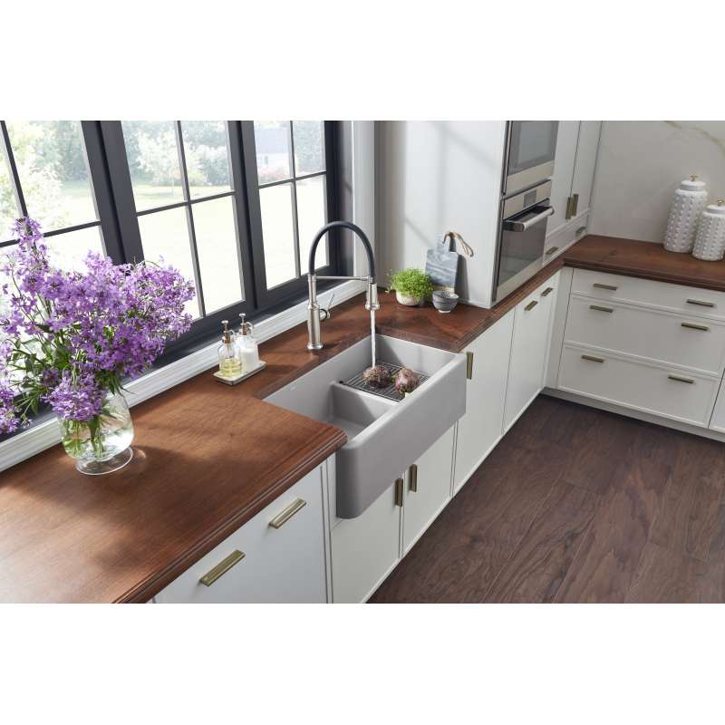 - Kit includes Empressa Semi-Pro kitchen faucet with coordinating soap dispenser