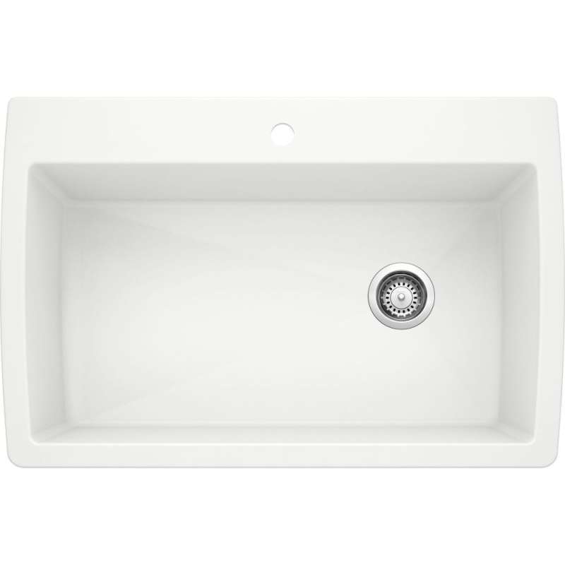 With over 30 years of material development, SILGRANIT has been engineered to take on the toughest kitchen tasks. Our patented sink material is strong and more durable than other sink surfaces. There is no risk of thermal shock and SILGRANIT will not blister, burn, melt or discolor from heat. With its non-porous, hygienic surface, it has the ability to push away liquids and residue resulting in a low maintenance, long-lasting material that is not only scratch and stain resistant, but easy to clean. The BLANCO DIAMOND DUAL MOUNT SUPER SINGLE KITCHEN SINK offers plenty of room for rinsing, washing, soaking, spraying and straining operations.