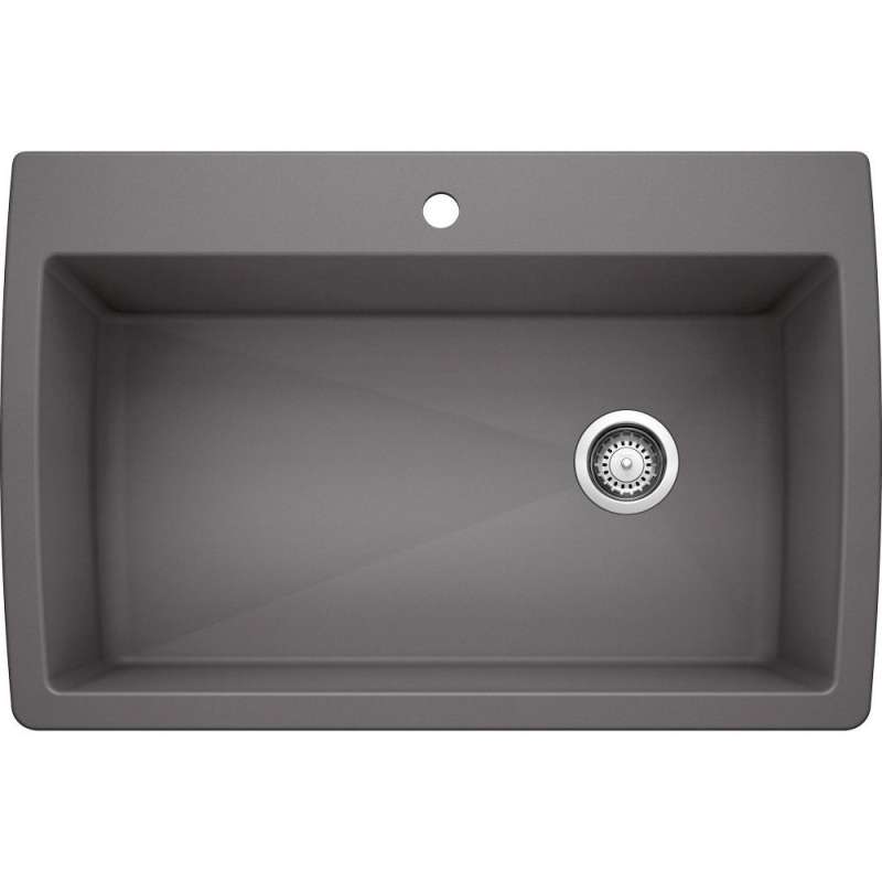 With over 30 years of material development, SILGRANIT has been engineered to take on the toughest kitchen tasks. Our patented sink material is strong and more durable than other sink surfaces. There is no risk of thermal shock and SILGRANIT will not blister, burn, melt or discolor from heat. With its non-porous, hygienic surface, it has the ability to push away liquids and residue resulting in a low maintenance, long-lasting material that is not only scratch and stain resistant, but easy to clean. The BLANCO DIAMOND DUAL MOUNT SUPER SINGLE KITCHEN SINK offers plenty of room for rinsing, washing, soaking, spraying and straining operations.