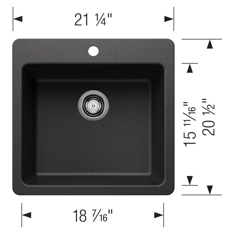 Liven SILGRANIT 21" Single Bowl Dual Mount Kitchen Sink - Anthracite, 443227