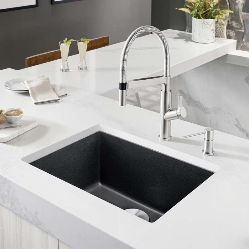 • Precis SILGRANIT 24" Single Bowl Undermount Kitchen Sink - Coal Black, 442928 Coal Black