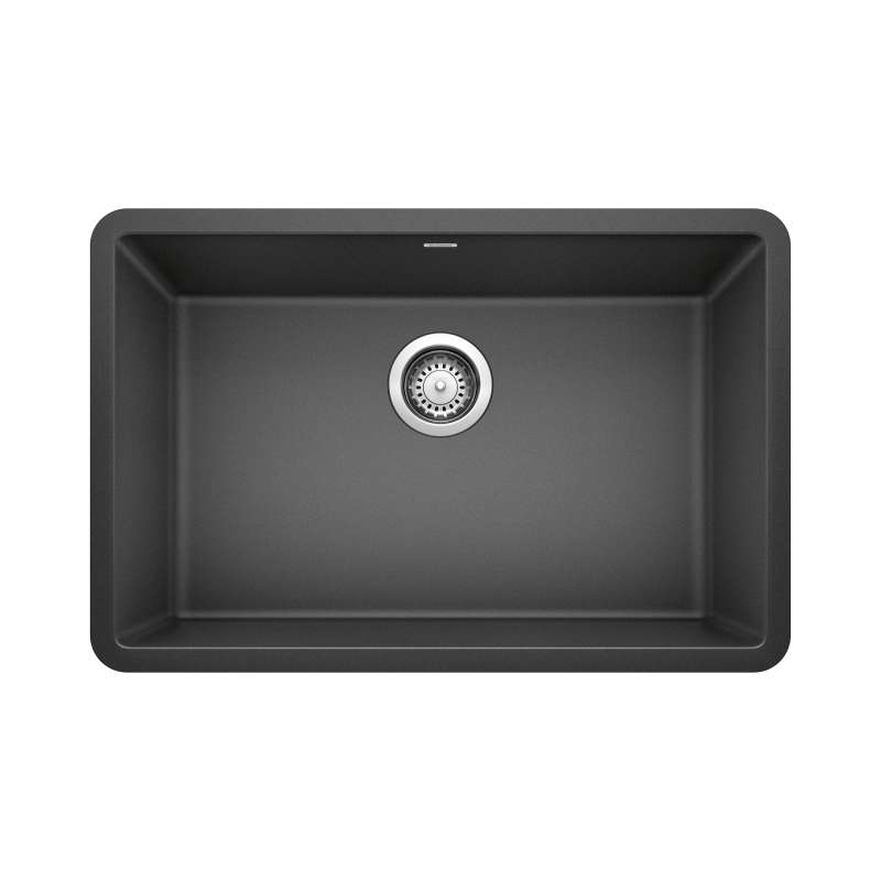 The PRECIS 27" SINGLE BOWL UNDERMOUNT KITCHEN SINK offers clean lines and a simple but spacious single bowl design. Made of SILGRANIT(R), PRECIS kitchen sinks are engineered to withstand heavy cookware and hot bakeware. Silgranit sinks are not only strong but also beautiful, available in a range of nature-inspired colors that effortlessly complement the latest kitchen trends. Combine the PRECIS sink with a BLANCO faucet and accessories to create a BLANCO UNIT; a seamlessly integrated kitchen solution designed to transform kitchen chores into joyful experiences. Everything you need to drink, prep and clean, all in one place.