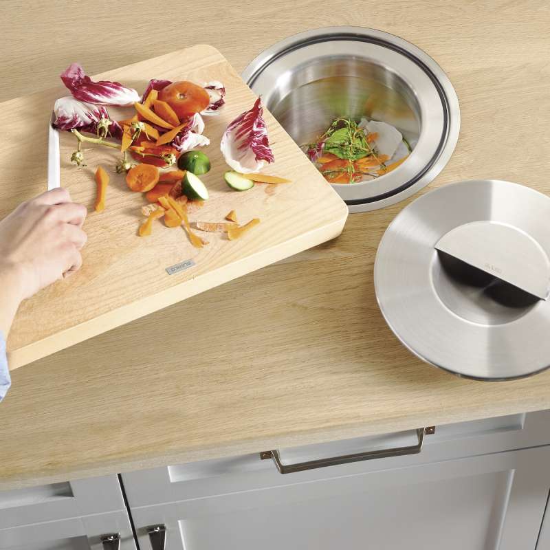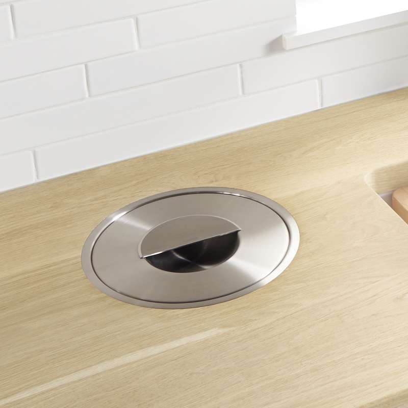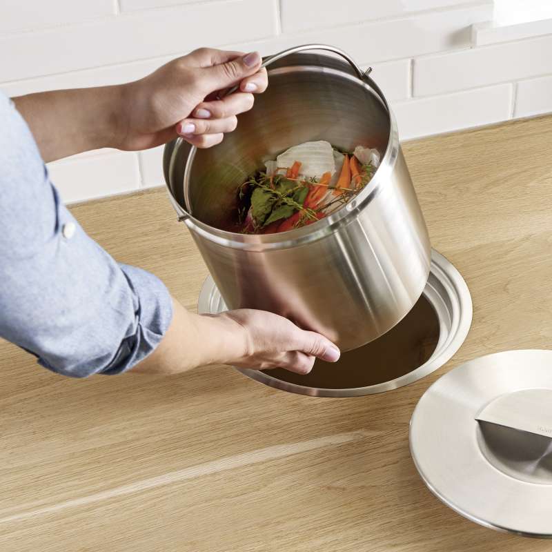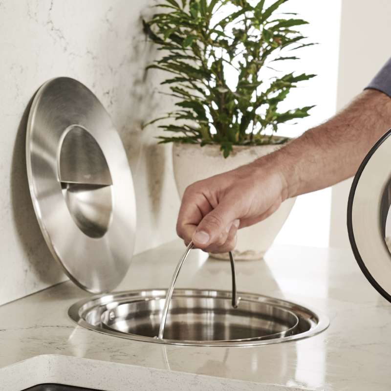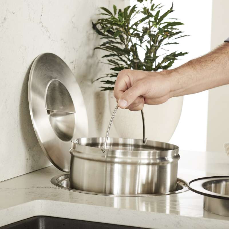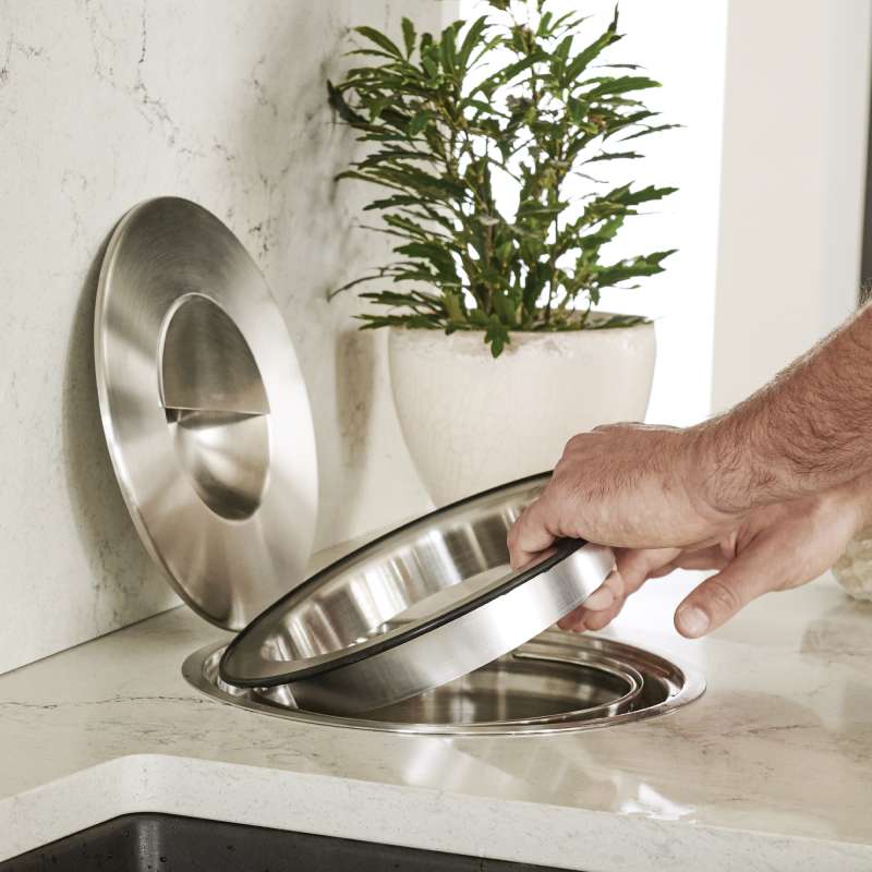 - Traps odors inside and integrates seamlessly into the counter with the lid specifically designed to keep odors out of the kitchen