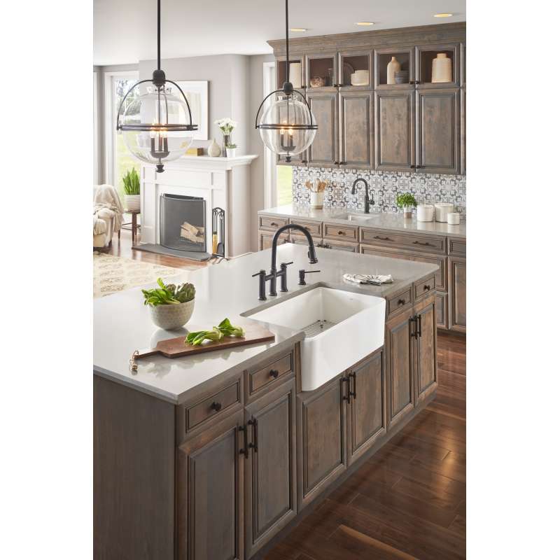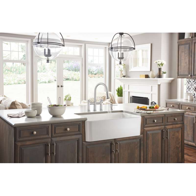 The authentic beauty of fireclay is brought to life with the eye-catching apron-front sink. With an exquisite blend of durability and versatility, the unique reversible design of the product features two different corner styles and allows for a choice of contemporary or traditional decor applications. Crafted with artisan hand-finishing techniques and high firing temperatures, it features a lustrous finish and sleek silhouette making it the perfect kitchen statement piece.