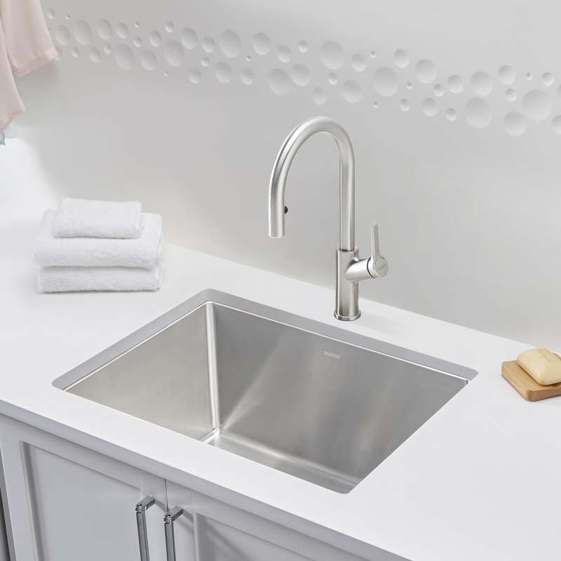 Every room in the home deserves to look its best, including the laundry or mudroom. The QUATRUS R15 Dual Mount Stainless Steel Laundry Sink is specifically designed to address the unique needs of cleaning beyond the kitchen. German-engineered with corrosion-resistant stainless steel for long-lasting durability and 15 mm radius corners for low-maintenance cleaning -the QUATRUS R15 utility sink demonstrates BLANCO's commitment to premium quality. Combine the QUATRUS R15 laundry sink with a BLANCO faucet and accessories to create a BLANCO UNIT; a seamless, fully-integrated solution designed to transform laundry chores into joyful experiences.