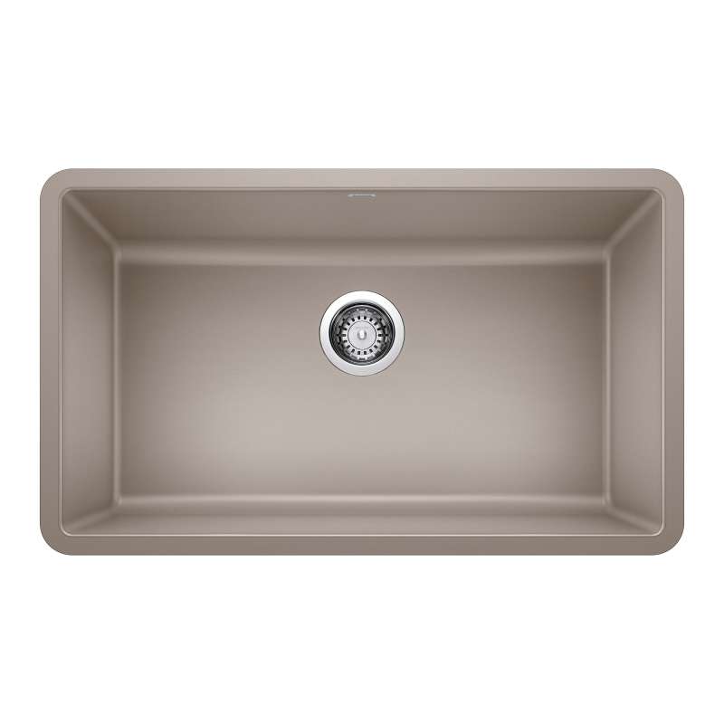 The PRECIS 30-in UNDERMOUNT SINGLE BOWL KITCHEN SINK offers clean lines and a simple but spacious single bowl design. This kitchen sink is made of SILGRANIT, a patented, certified granite composite material that is engineered to take on the toughest kitchen tasks. SILGRANIT is heat, scratch, stain, chip and impact resistant, making it stronger and more durable than other sink materials. Beautiful and highly functional with its non-porous, hygienic surface, it pushes away liquids and residue resulting in a low maintenance, easy to clean, long-lasting material. It's no wonder this hardworking granite composite sink collection is one of our most popular.