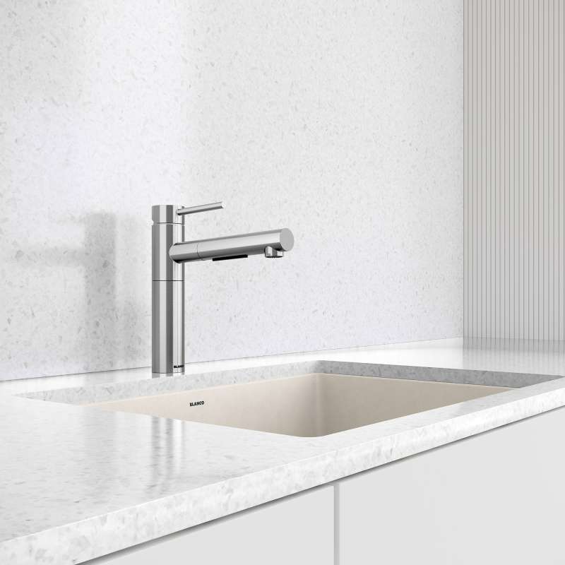 The ALTA II Kitchen Faucet is the modern take on BLANCO's compact classic. Engineered to optimize your kitchen space without compromising on performance, the ALTA II is a space-saving solution for smaller kitchens, tight spaces or below cabinetry. Enjoy convenient handling from above and an improved ergonomic spray button. Pair the ALTA II Faucet with a BLANCO sink, accessories, and organization for an optimized BLANCO UNIT.