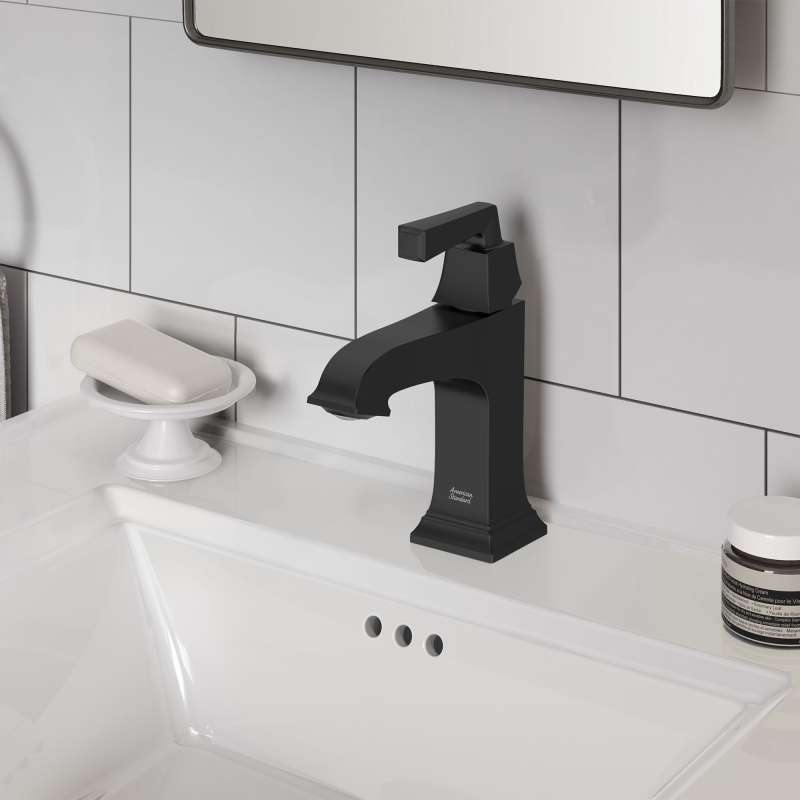 The Town Square S Single-Handle Faucet by American Standard makes a statement in the bathroom with its meticulously designed silhouette, detailed with architectural elements and inspiration from crown molding. This single-hole faucet is easy to install, with the inclusion of a push-pop drain, and can be installed on a 3-hole sink with the use of an optional escutcheon deck plate, sold separately. As an EPA WaterSense Certified faucet, with a maximum flow rate of 1.2 gallons per minute, the faucet helps to save water when compared to a standard faucet. Available in beautiful tarnish- and scratch-resistant finishes, the faucet also coordinates with the rest of the Town Square S collection, a full offering of bathroom fittings and fixtures, making your next bathroom remodel simple.