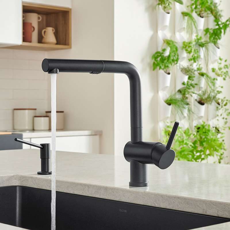 A beautifully designed kitchen deserves an equally beautiful faucet. The sleek low-profile design of the LINUS has a fully insulated pull-out handspray and angular design. Available in a wealth of colors and finishes, the LINUS collection coordinates perfectly with all 9 SILGRANIT sink colors.