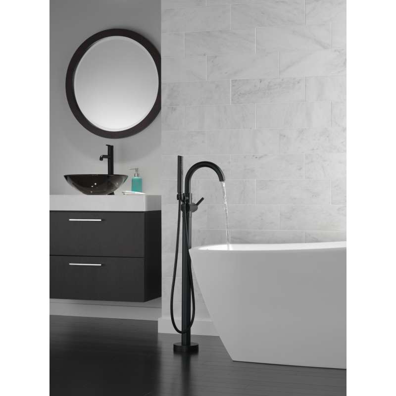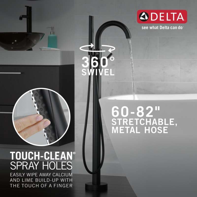 Complete your bath with a beautifully designed Delta roman tub faucet, meticulously crafted to turn heads and enhance your experience. The included hand shower makes this a versatile addition to your bath, perfect for rinsing off, washing loved ones and pets or keeping your tub clean. Matte Black makes a statement in your space, cultivating a sophisticated air and coordinating flawlessly with most other fixtures and accents. With bright tones, Matte Black is undeniably modern with a strong contrast, but it can complement traditional or transitional spaces just as well when paired against warm neutrals for a rustic feel akin to cast iron. You can install with confidence, knowing that Delta faucets are backed by our Lifetime Limited Warranty.