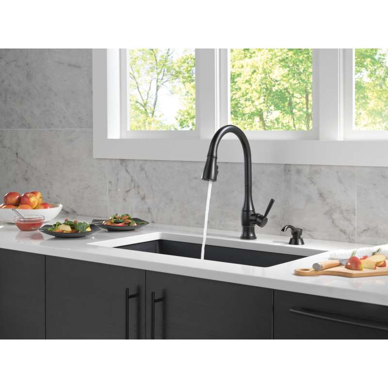 Bring delicate details and flowing lines to your kitchen with the hazelwood kitchen faucet. Magnatite docking uses a powerful integrated magnet to set your pull down sprayer precisely into place and hold it there so it stays docked when not in use. Shieldspray technology uses a concentrated jet to power away stubborn messes while an innovative shield of water contains splatter and clears off the mess, so you can spend less time soaking, scrubbing and shirt swapping. Delta kitchen faucets with diamond seal technology perform like new for life with a patented design which reduces leak points, is less hassle to install and lasts twice as long as the industry standard. You can install with confidence, knowing that delta faucets are backed by our lifetime limited warranty.