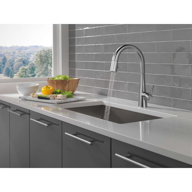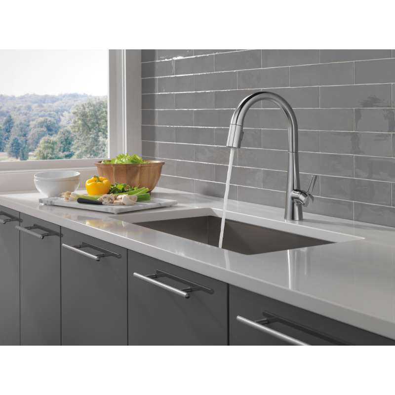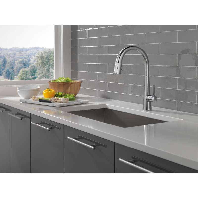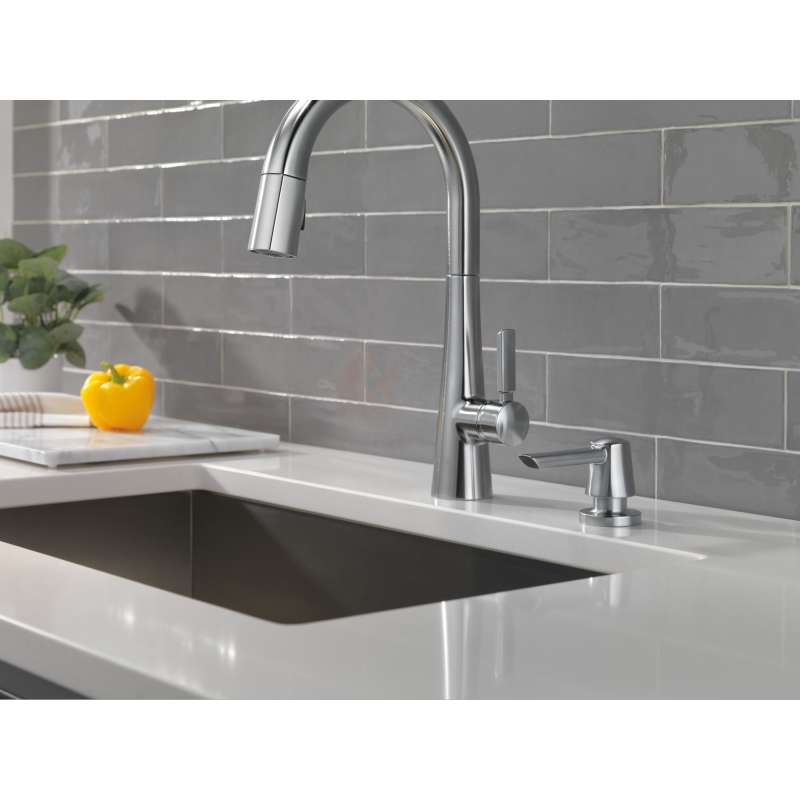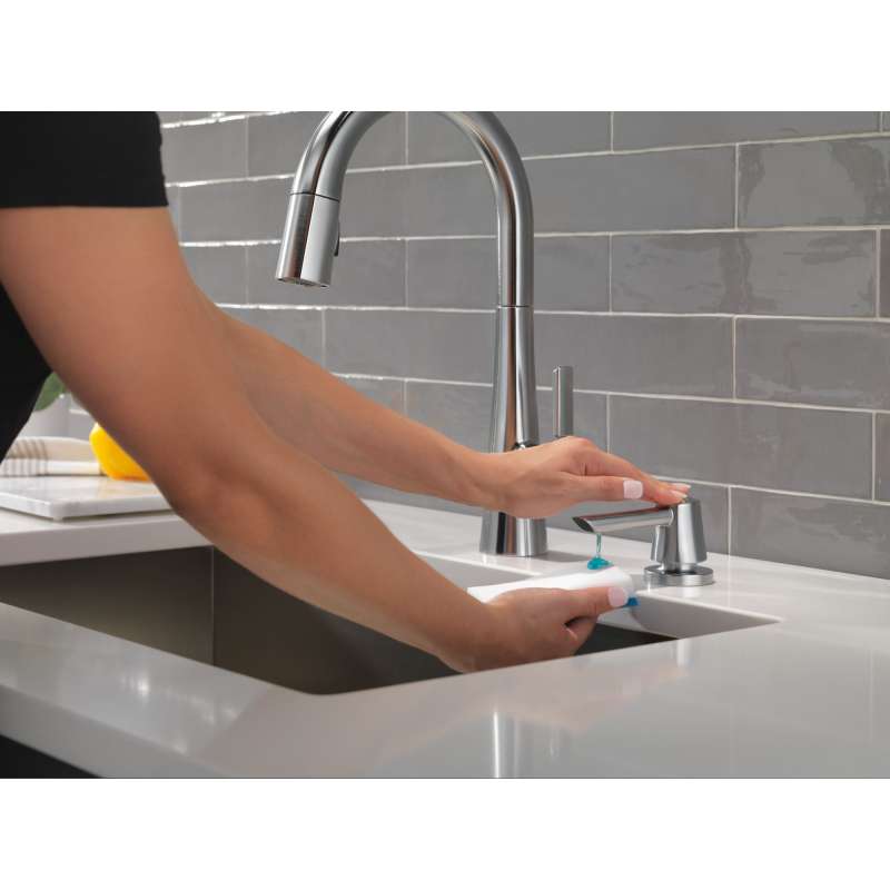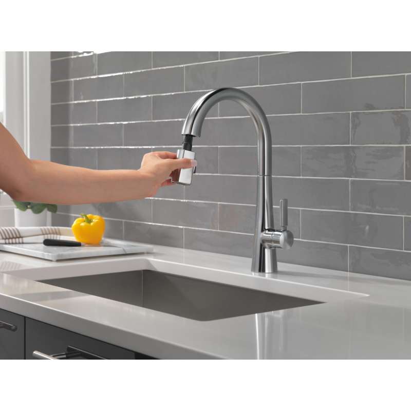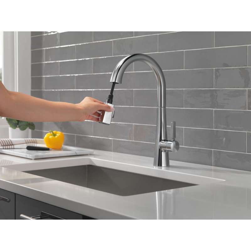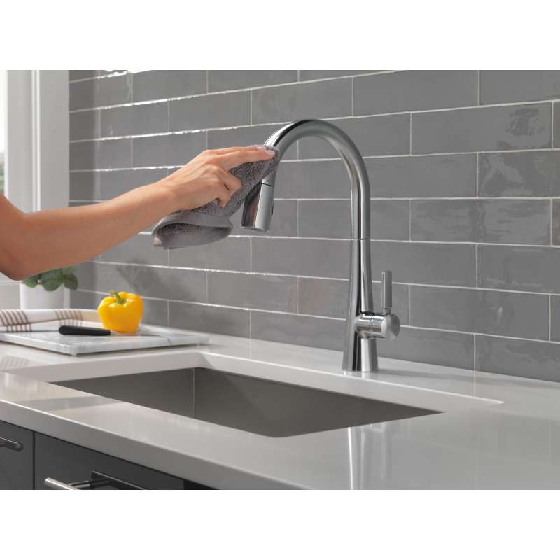 The monrovia kitchen collection stands out in any space with its statuesque form and striking handle design. Delta magnatite docking uses a powerful integrated magnet to set your pull down sprayer precisely into place and hold it there so it stays docked when not in use. Delta lumicoat finishes are guaranteed to resist water spots and mineral buildup and easily wipe clean without the need for cleaners or chemicals. The ultra-sleek surface repels liquids, resisting water spots and staying cleaner longer, so your faucet stays beautiful. You can install with confidence, knowing that delta kitchen faucets are backed by our lifetime limited warranty.