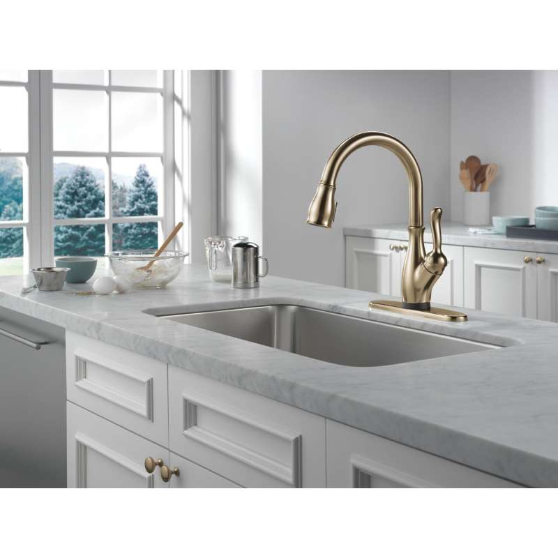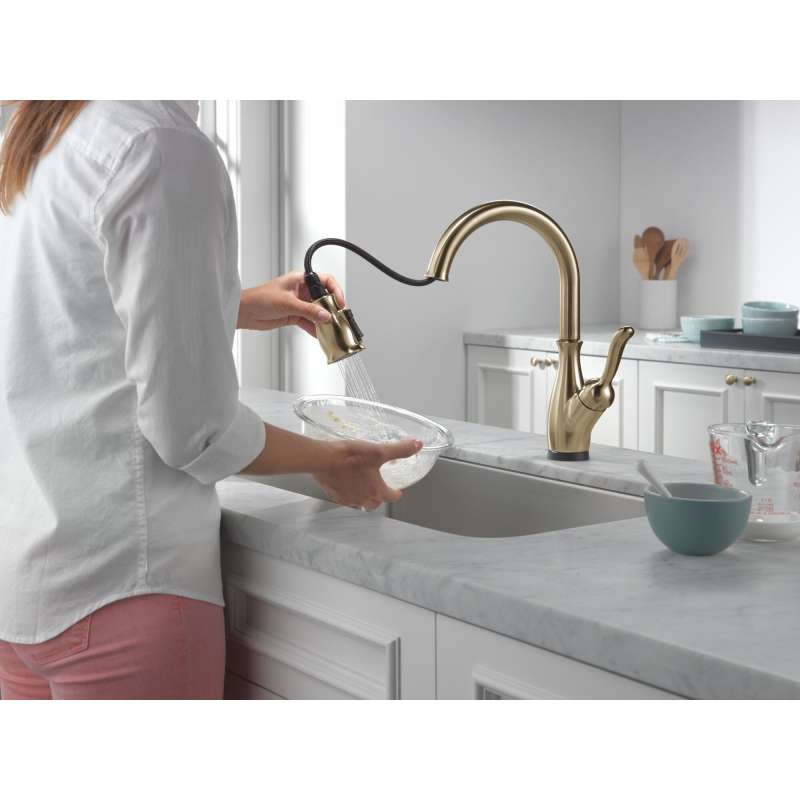 Touch it on. Touch it off. Whether you have two full hands or 10 messy fingers, delta touch2o technology helps keep your faucet clean, even when your hands aren’t. A simple touch anywhere on the spout or handle with your wrist or forearm activates the flow of water at the temperature where your handle is set. The tempsense led light changes color to alert you to the water’s temperature and eliminate any possible surprises or discomfort. Magnatite docking uses a powerful integrated magnet to pull your faucet spray wand precisely into place and hold it there so it stays docked when not in use. Delta shieldspray technology cleans with laser-like precision while containing mess and splatter. A concentrated jet powers away stubborn messes while an innovative shield of water contains splatter and clears off the mess, so you can spend less time soaking, scrubbing and shirt swapping. Kitchen faucets with touch-clean spray holes allow you to easily wipe away calcium and lime build-up with the touch of a finger. You can install with confidence, knowing that delta faucets are backed by our lifetime limited warranty.