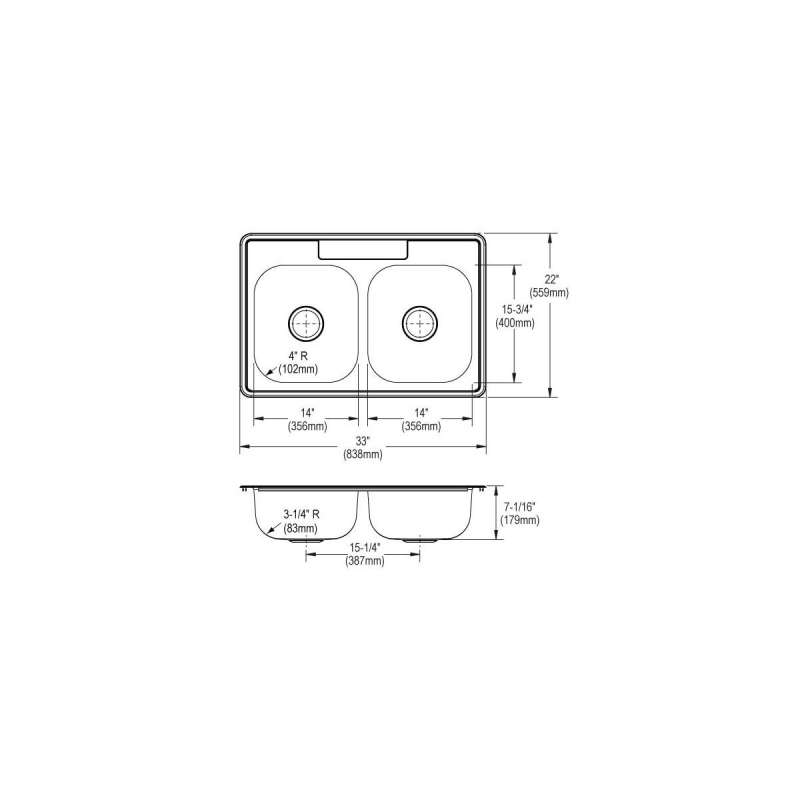| Countertop Cutout Dimensions | 32-3/8" x 21-3/8" (822mm x 543mm) with 1-1/2" (38mm) corner radius |