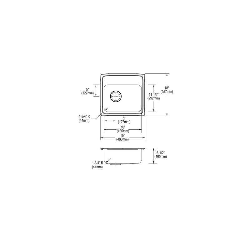 | Countertop Cutout Dimensions | 18-3/8" x 17-3/8" (467mm x 441mm) with 1-1/2" (38mm) corner radius |