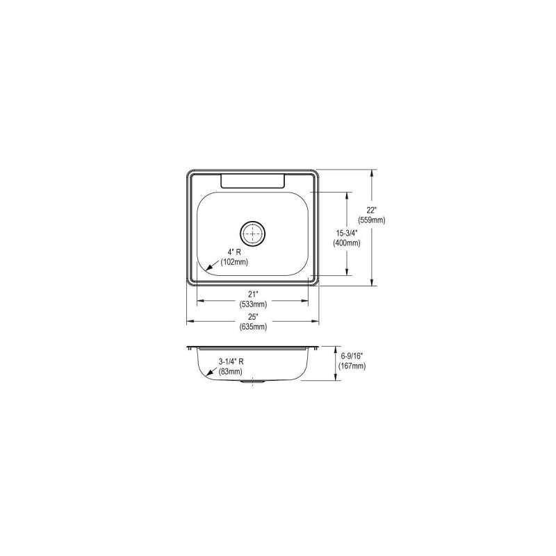 - DRAIN OPENING: Sink drain opening measures 3-1/2"